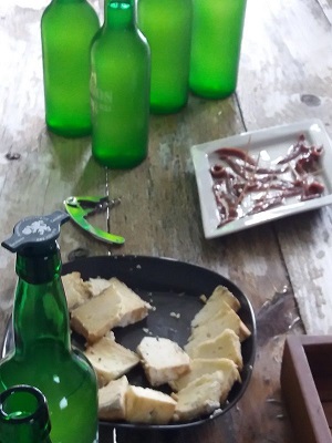 Paseamos por la finca, con los manzanos en plena floración y unas maravillosas vistas de la costa cántabra. A continuación pasamos al lagar donde nos explicaron todo el proceso de elaboración de la sidra de forma totalmente artesana y terminamos tomando el aperitivo con productos de Cantabria acompañados de la riquísima sidra "45 Amigos".